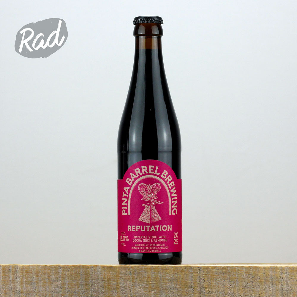 Imperial Stout w/ Cocoa Nibs & Almonds. Aged for 22-33 months in Heaven Hill Bourbon, Calvados and Banyuls Barrels.